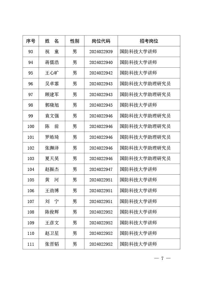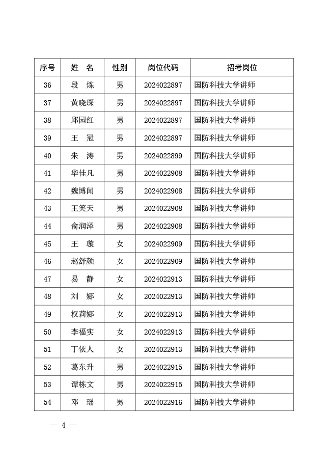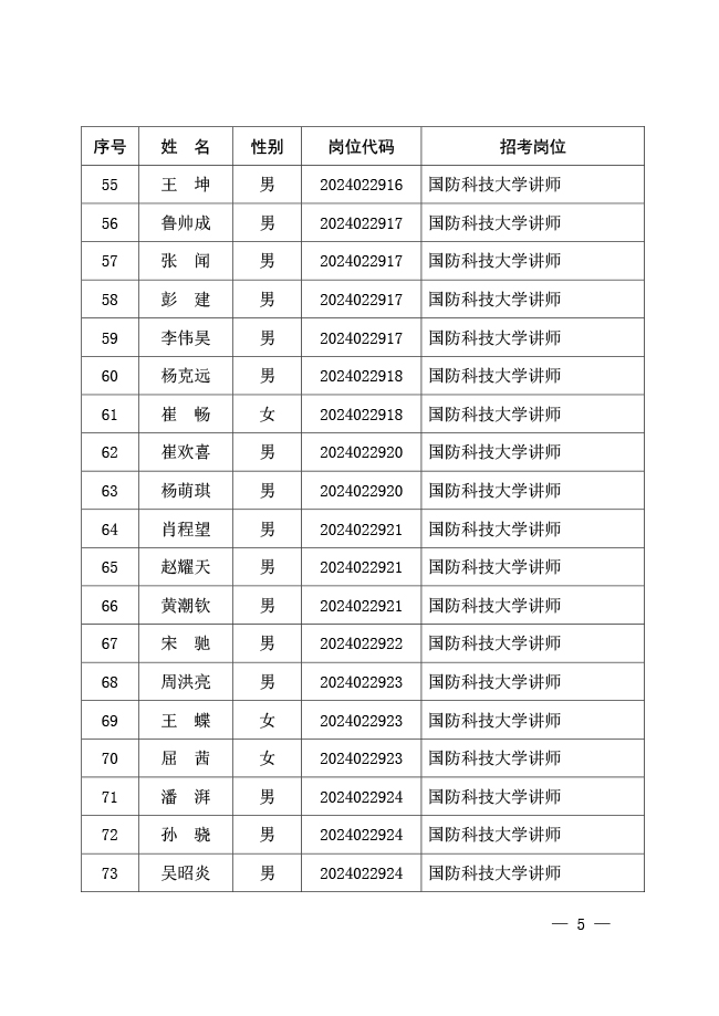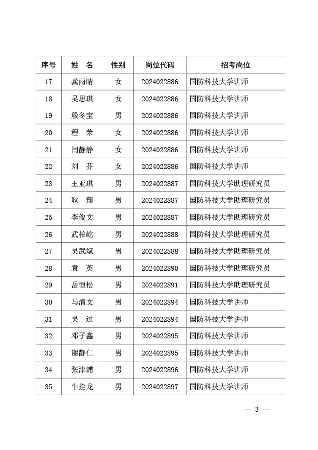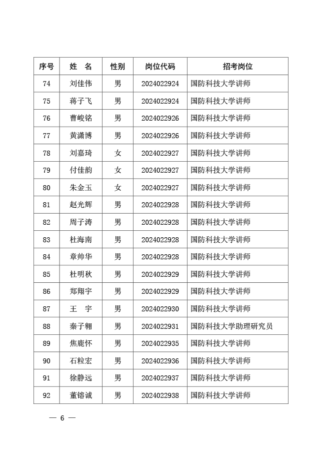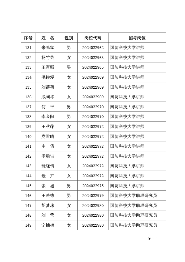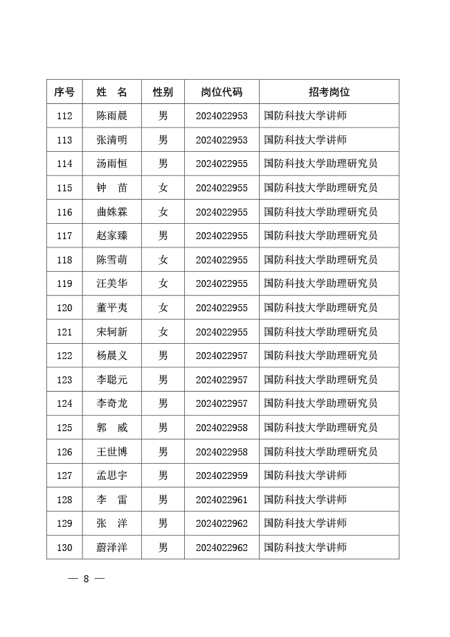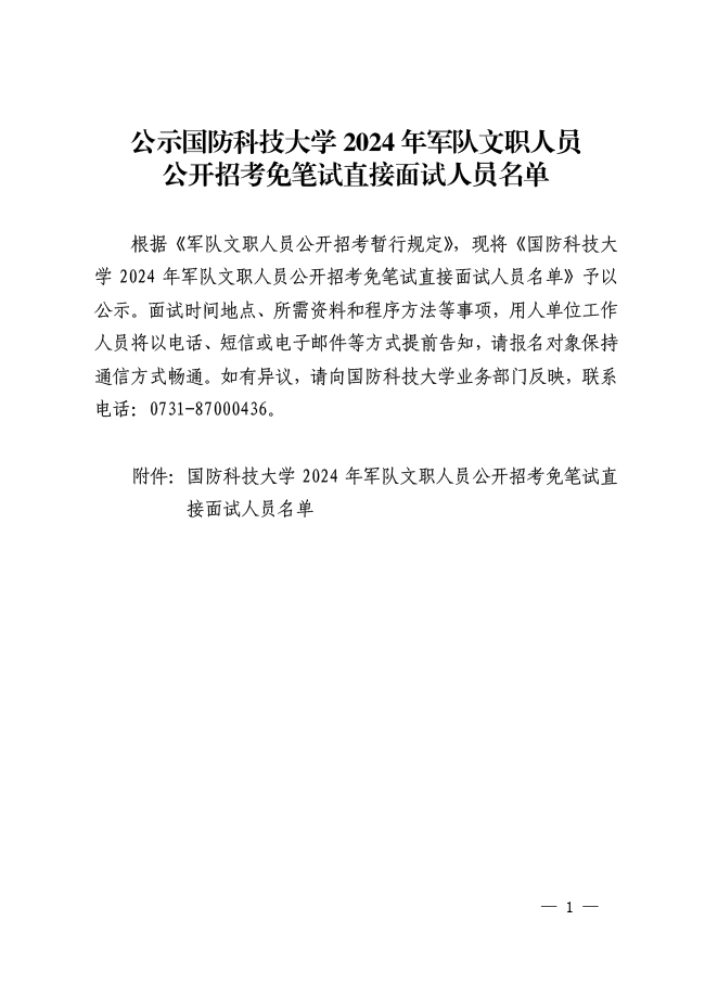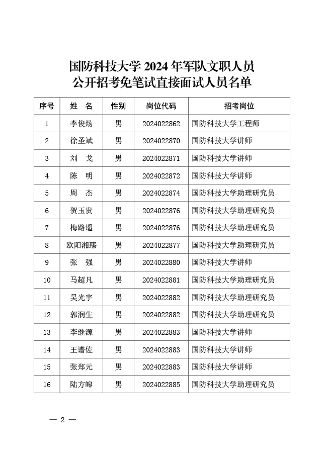公示国防科技大学2024年军队文职人员 公开招考免笔试直接面试人员名单