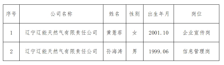 根据省属企业员工招聘有关规定,经过资格审核、笔试、面试、考察等程序,确定以下人员为辽宁能源投资(集团)有限责任公司所属企业拟聘人员,现予以公示。公示期间如有问题,请向辽宁能源投资(集团)有限责任公司纪委反映。