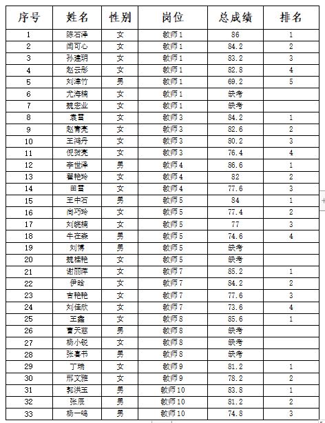 根据《朝阳师范高等专科学校2023年公开招聘工作人员公告》要求,现将总成绩及排名予以公布(详见附件)。
