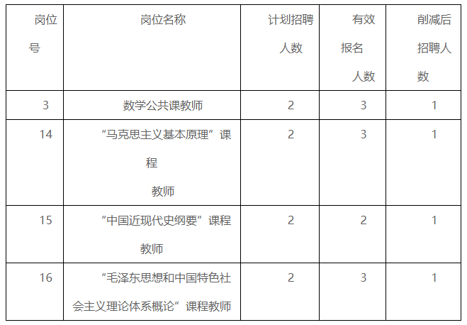 根据招聘工作公告要求,若有效报名人数与岗位计划比例小于2:1,则岗位计划数按比例削减。现就削减部分岗位招聘计划情况公告如下: