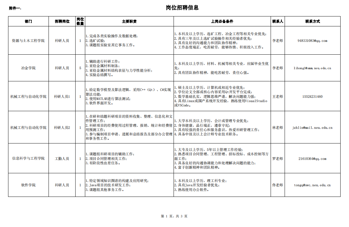 (一)相应岗位具体情况、招聘工作日程及联系人见附件一。