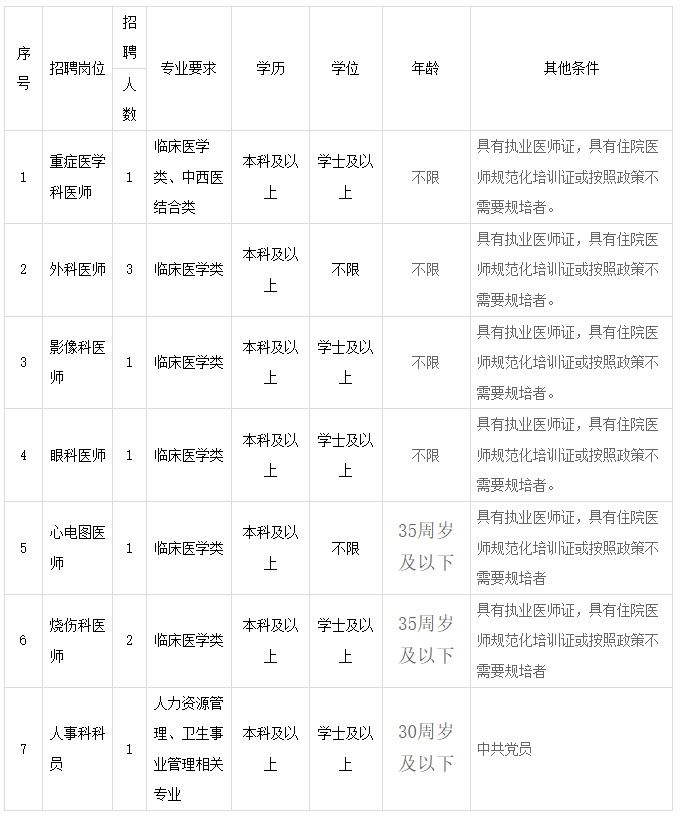 医院本次面向社会公开招聘合同制工作人员,详见计划表: