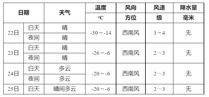 我市研考期间(12月23日~12月25日)天气以晴或多云天气为主;22日、23日气温较低,体感较冷,24~25日气温回升6~8℃;22~25日风力适宜,西南风2~4级。近期寒潮来袭,气温持续走低,考生需要根据考点安排有序安检入场,请考生增添衣物,做好个人防寒保暖准备。提醒广大考生关注最新天气预报预警信息,根据天气变化做好相应准备。研考期间气象部门具体预报如下: