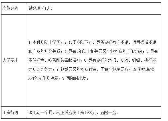 1.根据园区主导产业对外招商,负责公司具体相关招商工作,完成公司招商指标,组建招商团队,培养团队,提升团队专业能力与水平;