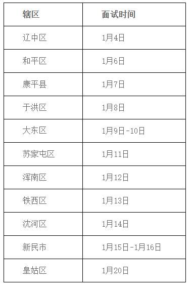 2023年沈阳市医疗卫生系统公开招聘市级医疗卫生单位面试工作已于2023年12月16-17日完成,区县(市)级医院、社区卫生服务中心、乡镇卫生院、疾控中心、卫生监督中心、卫健中心等区级医疗卫生单位面试工作由各区县(市)分别组织,为方便考生提前安排时间,现将各区县(市)面试时间安排预通知如下(准确面试时间以后续各区县(市)公告为准),请各位考生关注沈阳市卫生健康委员会网站信息并提前做好安排,确保按时参加面试。