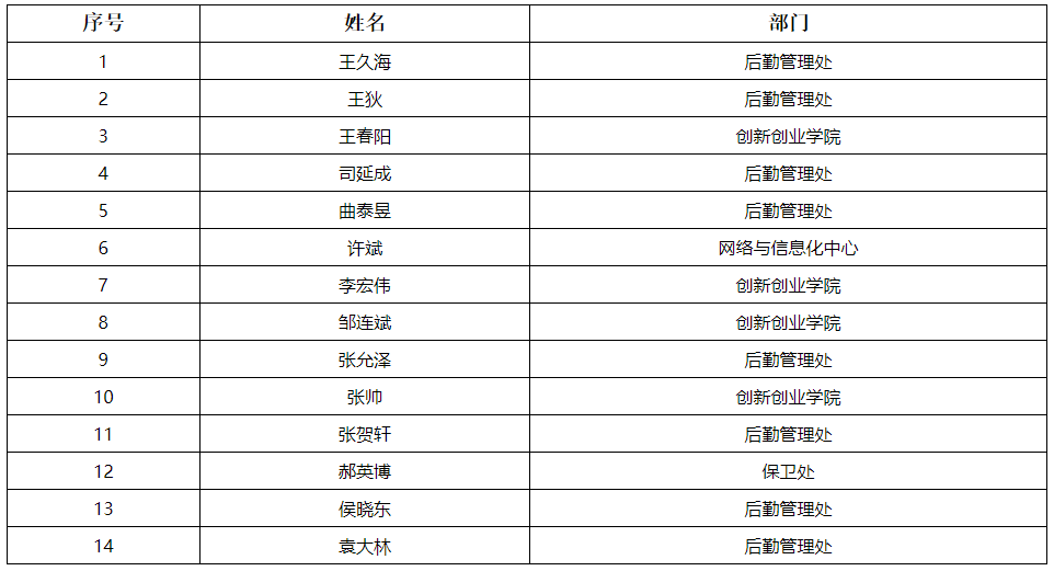 根据《沈阳化工大学2023年工勤技能二级(技师)、三级(高级工)岗位评聘实施方案》(化大发[2023]95号),经个人自愿报名、部门或单位推荐、人事处对申报人进行资格条件审核、各二级党组织对符合资格的申报人进行民主推荐测评、学校工勤技能岗位评聘考核组评审,确定工勤技能二级、三级岗位拟聘用人选名单如下: