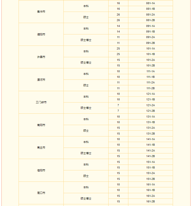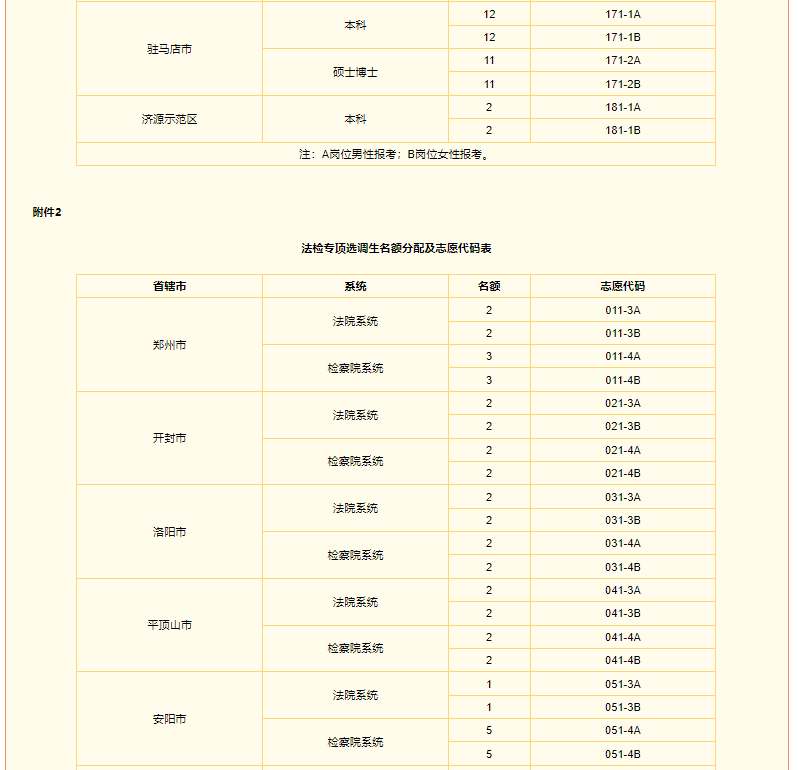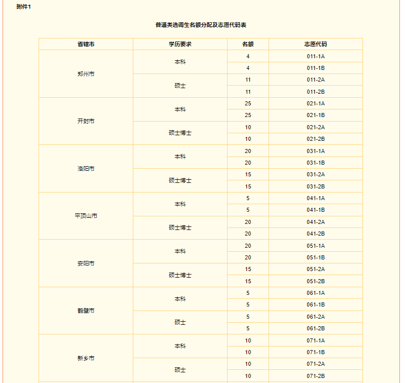 各省辖市(含济源示范区,下同)招录名额见附件1、2。