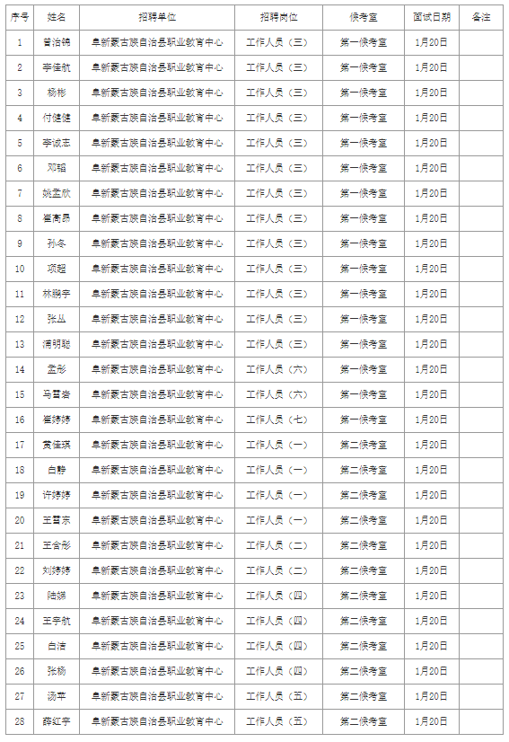 一、面试时间:2024年1月20日(星期六),上午7点30分考生准时入场,上午9点开始,面试考生务必按规定时间准时参加面试。每名考生的具体面试日期、时间及候考室详见《2023年阜新蒙古族自治县面向社会公开招聘特色体育、职业教育等专业人才面试人员时间安排情况表》(附件1)。