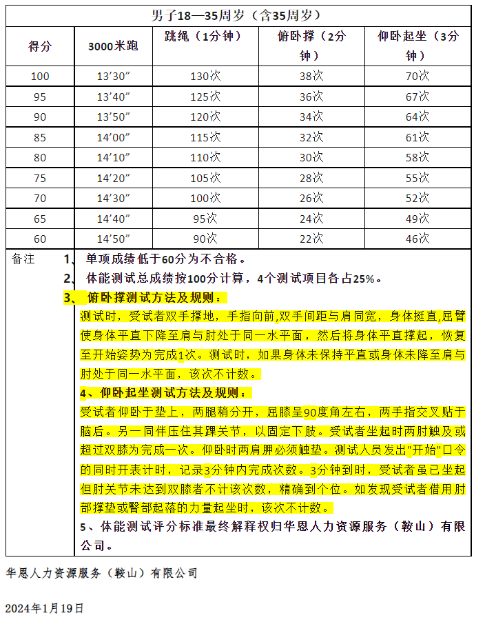 报考综合应急救援人员必须参加体能测试,体能测试项目设为3000米、跳绳、仰卧起坐、俯卧撑,具体评分标准见附件一。