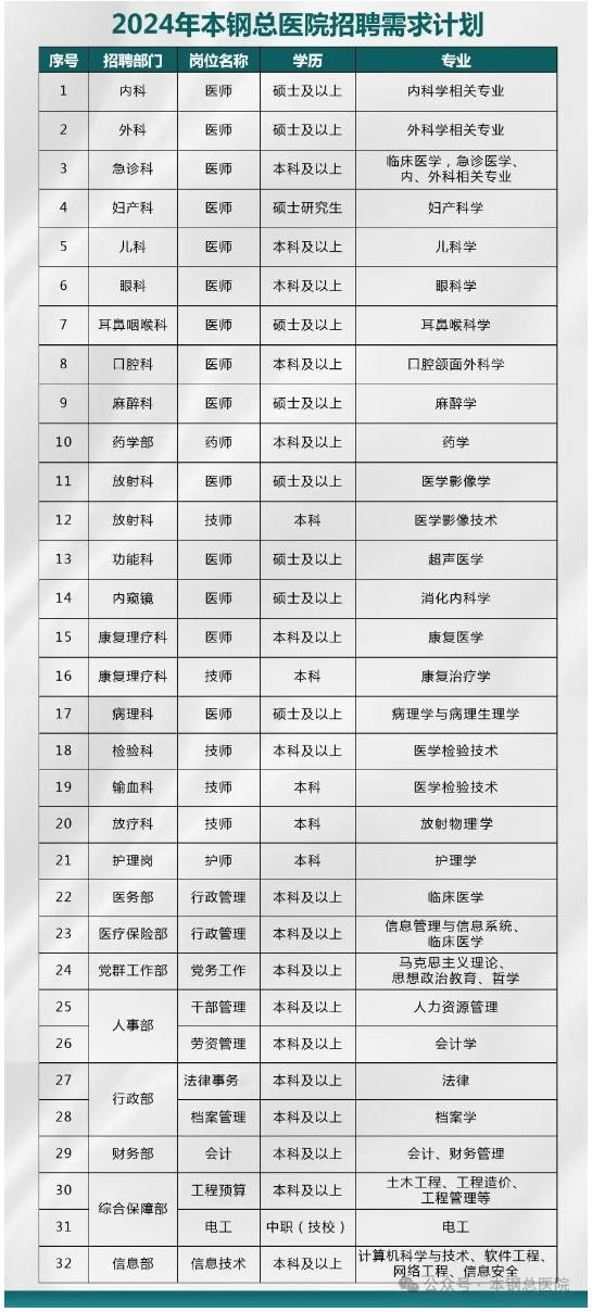 报名地址:辽宁省本溪市本钢总医院6号楼4楼人事部