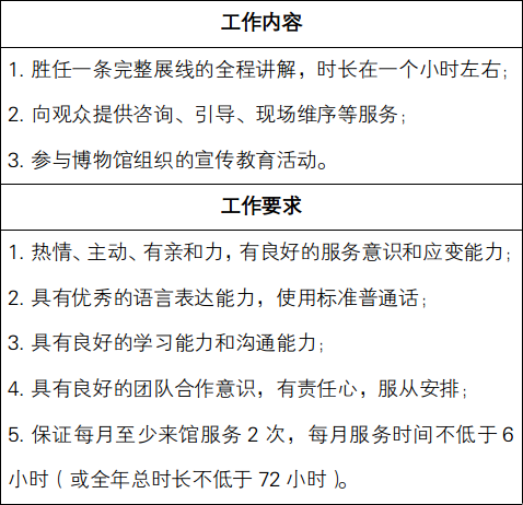 4.热爱文博及历史文化事业,对文物、历史知识或博物馆基础知识有一定的了解;