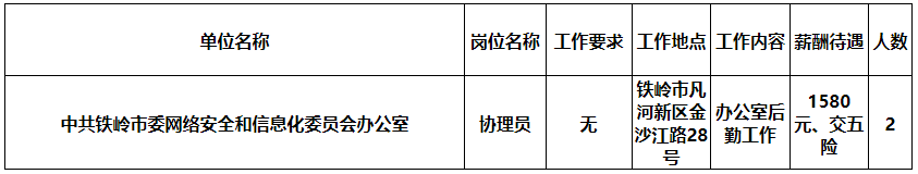 铁岭市公益性岗位招聘2人公告