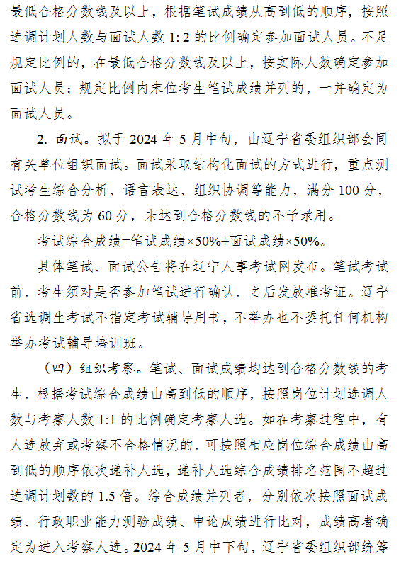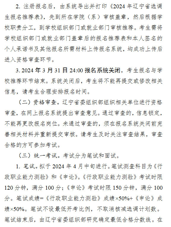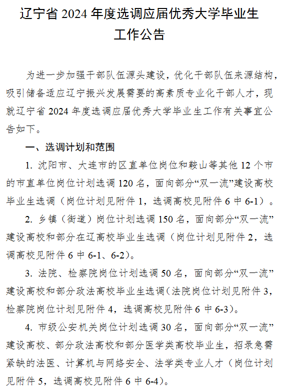 辽宁省2024年度选调应届优秀大学毕业生350人工作公告
