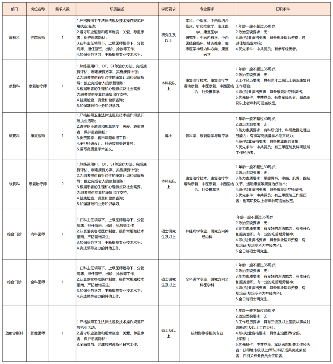 根据医院业务发展需要,现面向社会公开招聘8名工作人员,相关事项公告如下: