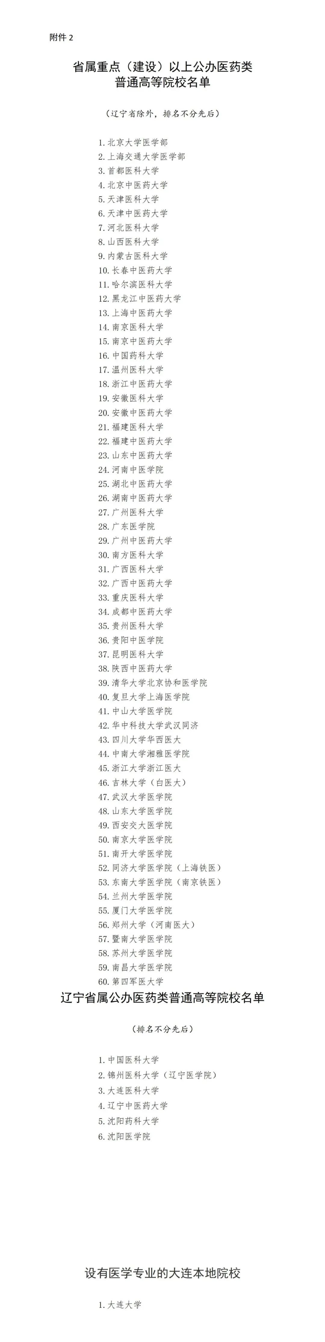 本科生院校范围为各省属重点(建设)以上公办医药类普通高等院校、辽宁省属公办医药类普通高等院校、设有医学专业的大连本地院校(附件2);研究生不限院校范围。