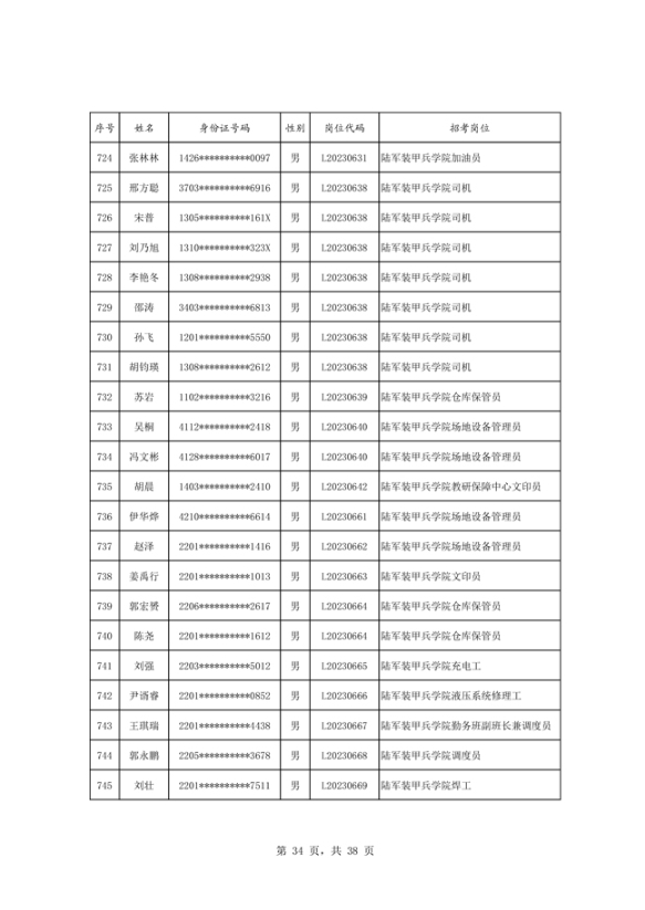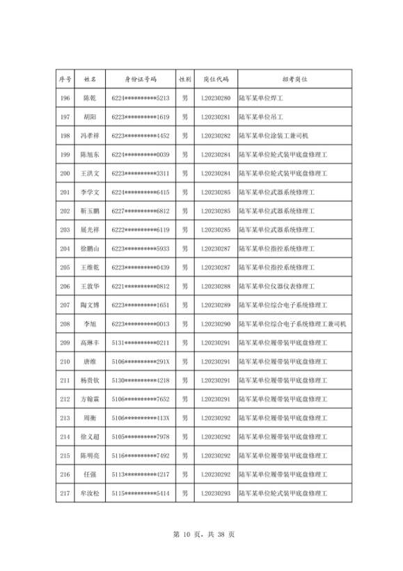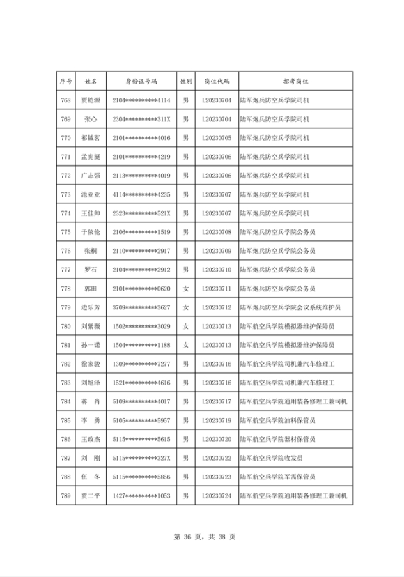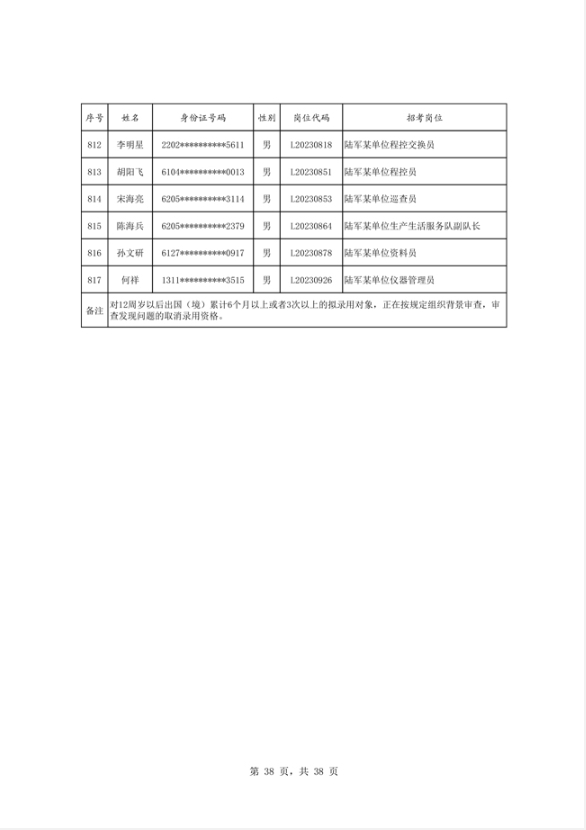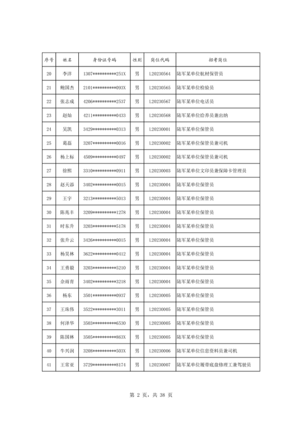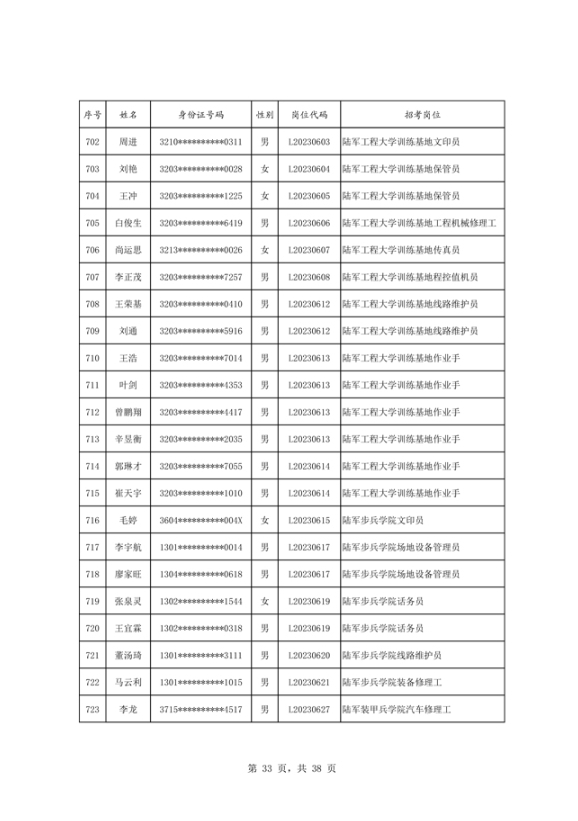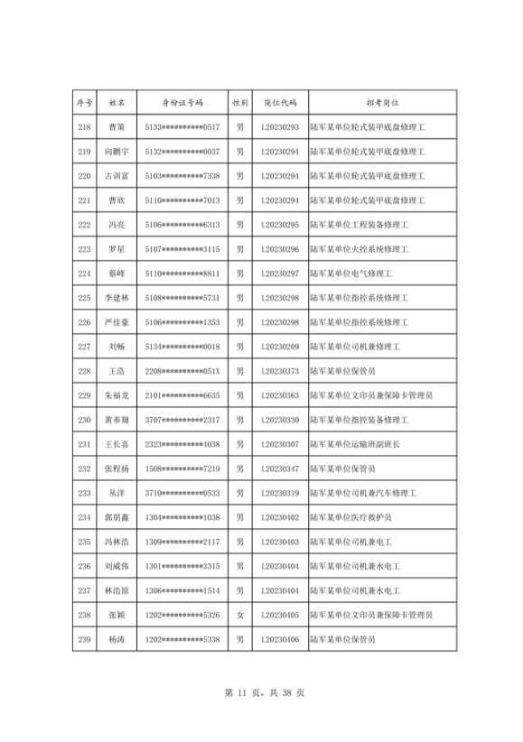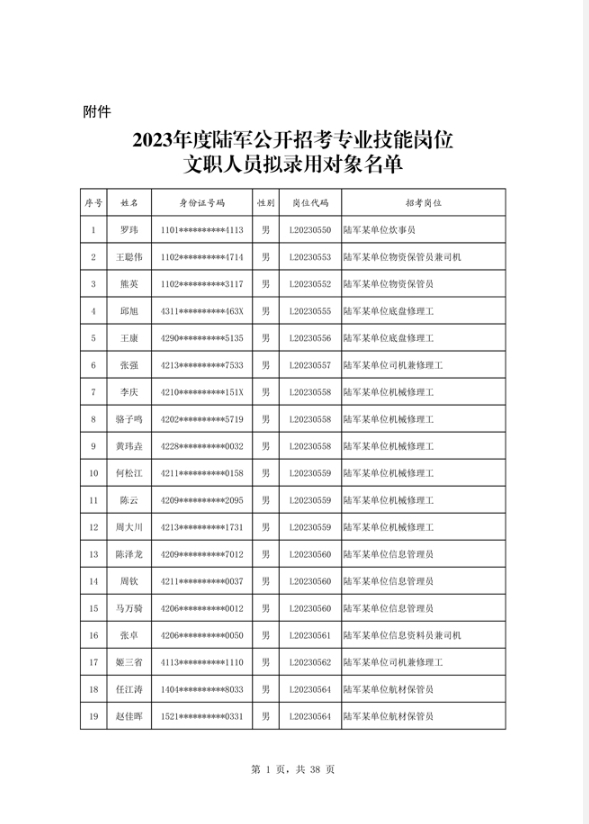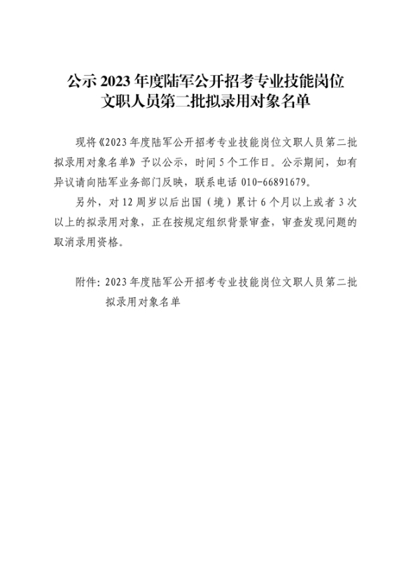 公示2023年度陆军公开招考专业技能岗位文职人员第二批拟录用对象名单
