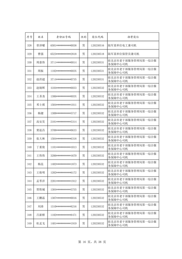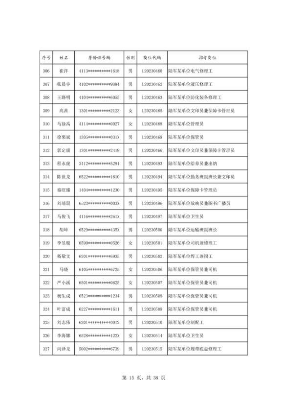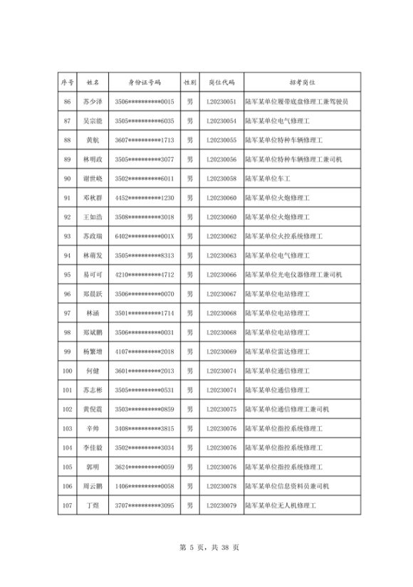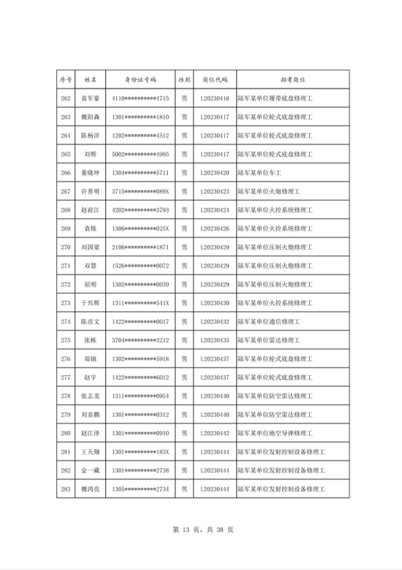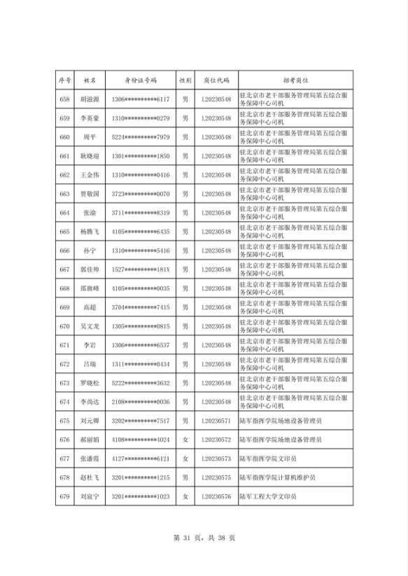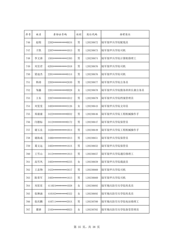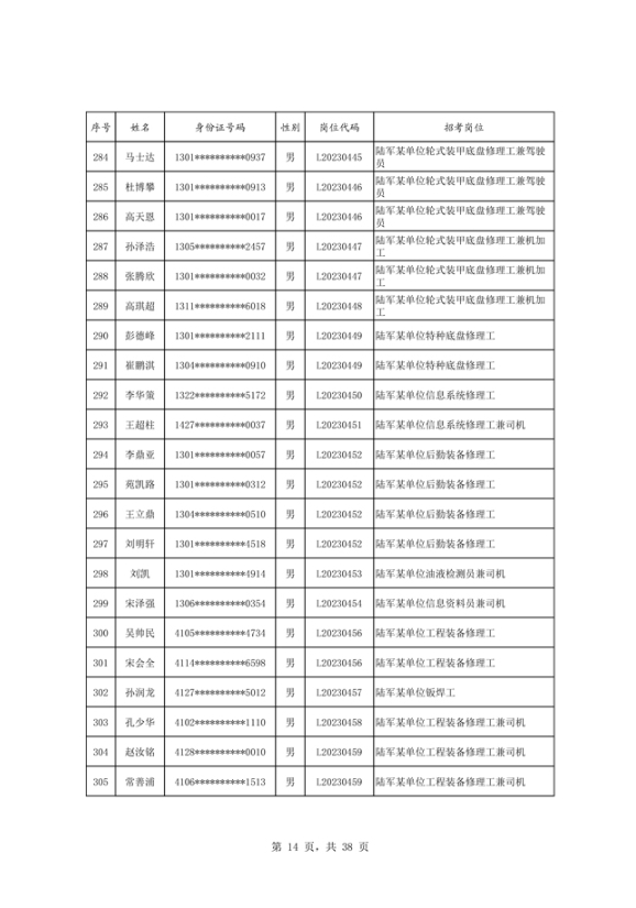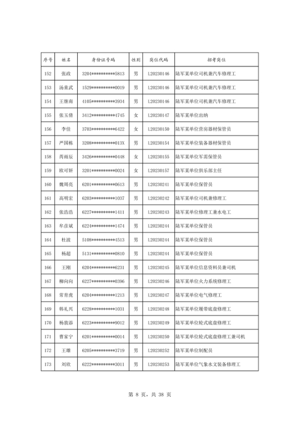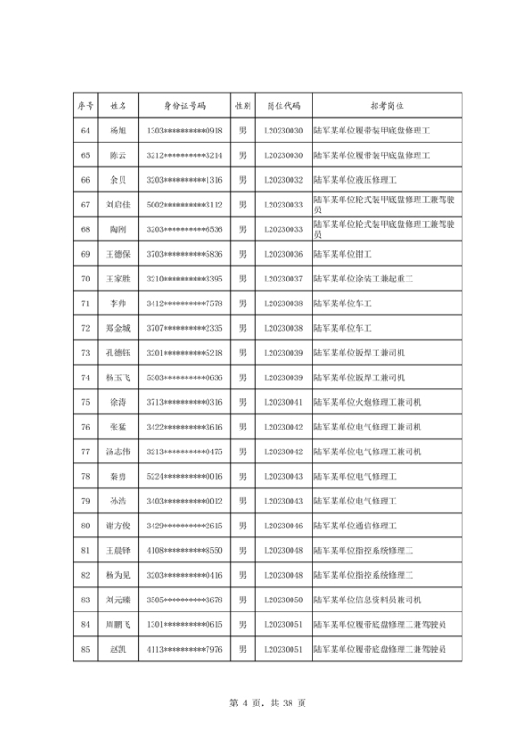 公示2023年度陆军公开招考专业技能岗位文职人员第二批拟录用对象名单
