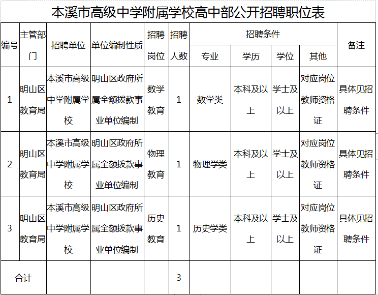 4.招聘工作由本溪市高级中学负责,公告解释权归本溪市高级中学所有。