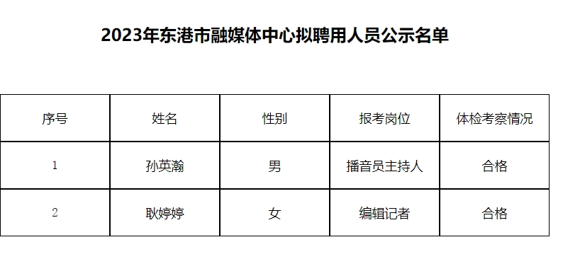 关于2023年度东港市融媒体中心面向普通高校招聘工作人员(第二批)拟聘用人员的公告