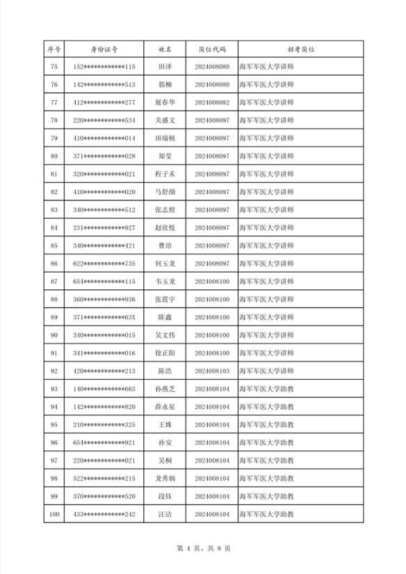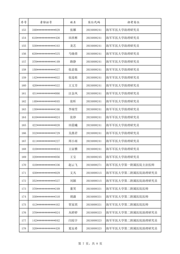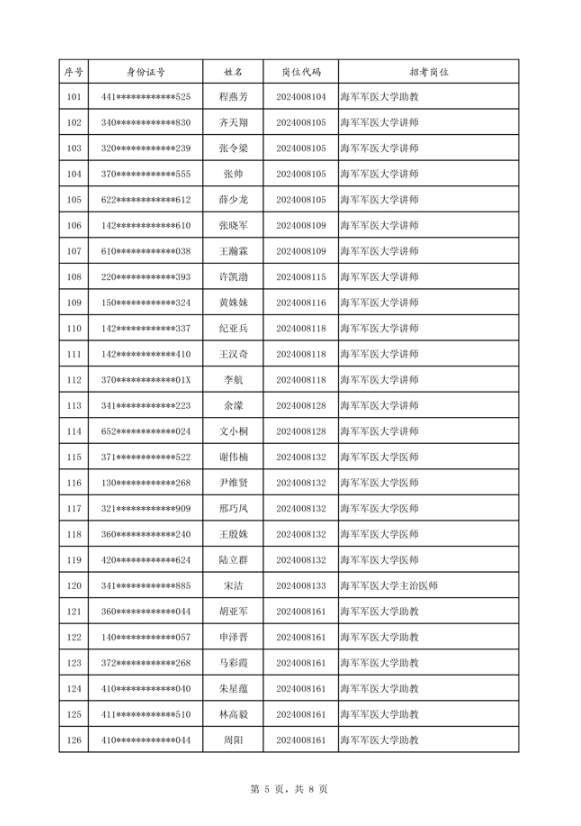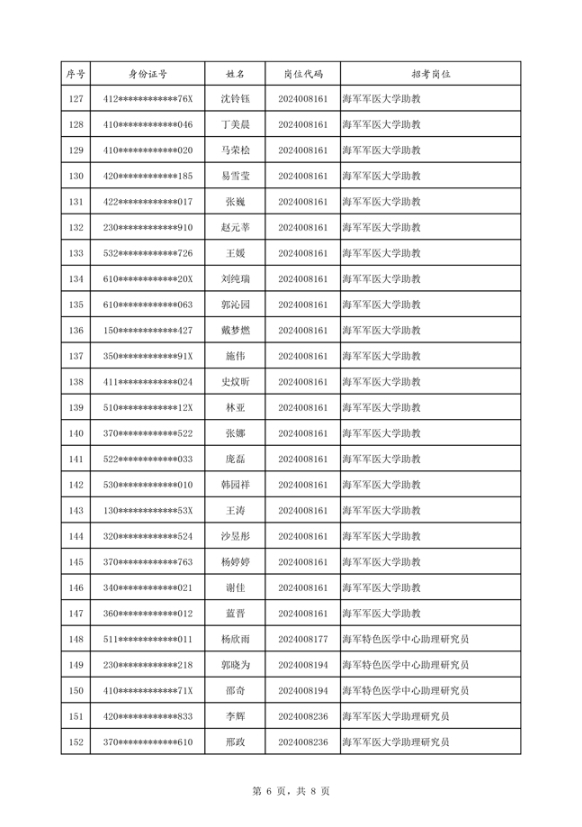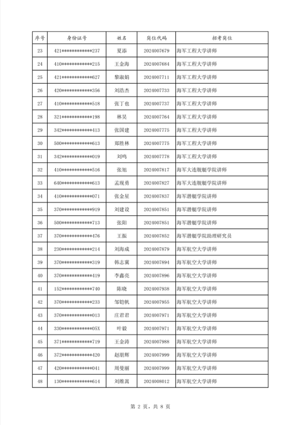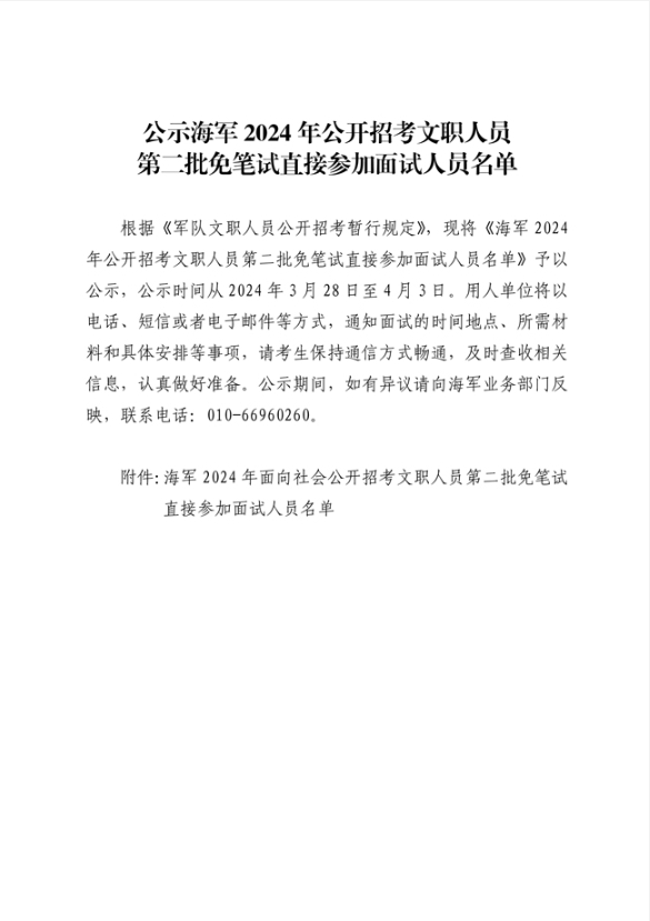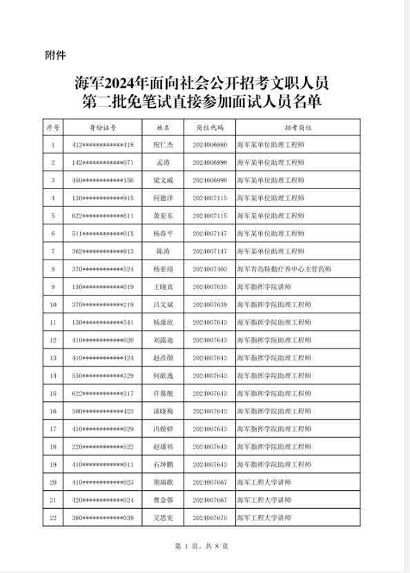公示海军2024年公开招考文职人员 第二批免笔试直接参加面试人员名单