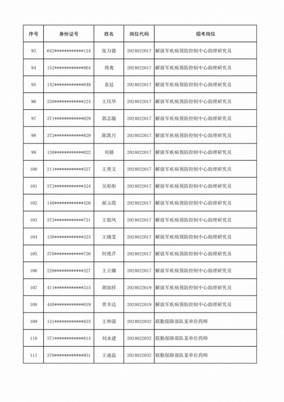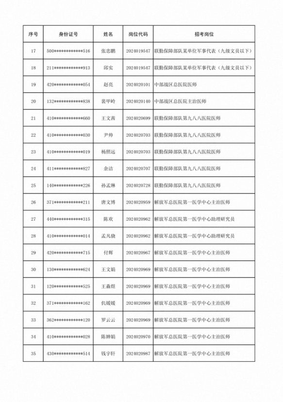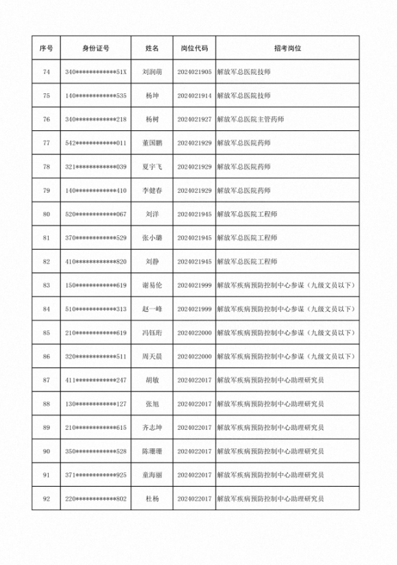 公布联勤保障部队2024年文职人员公开招考第二批免笔试直接参加面试人员名单