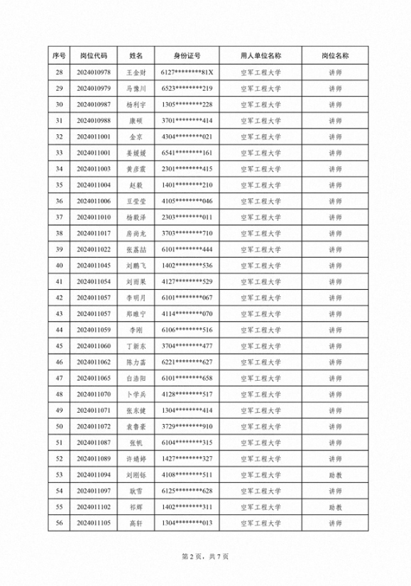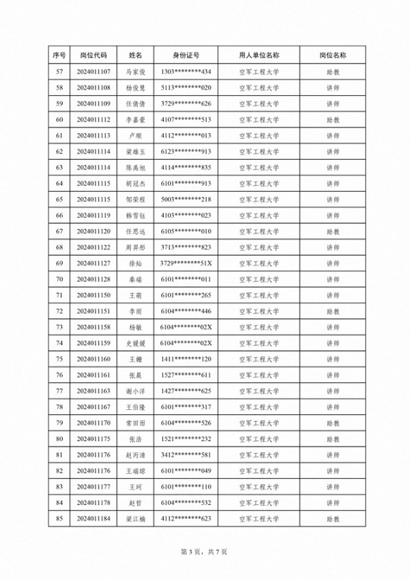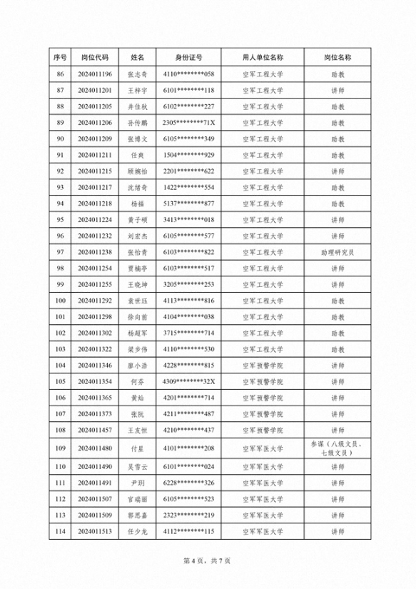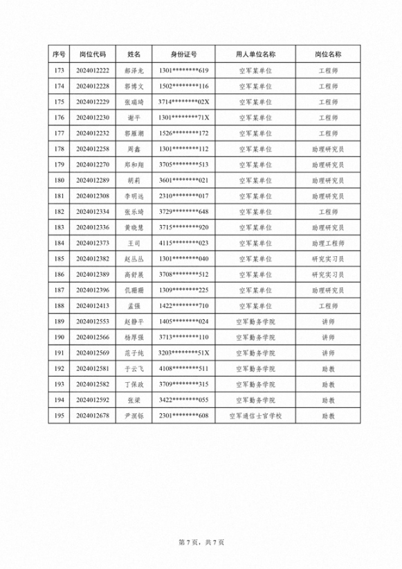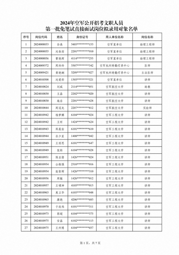 公示2024年空军公开招考文职人员第一批免笔试直接面试岗位拟录用对象名单