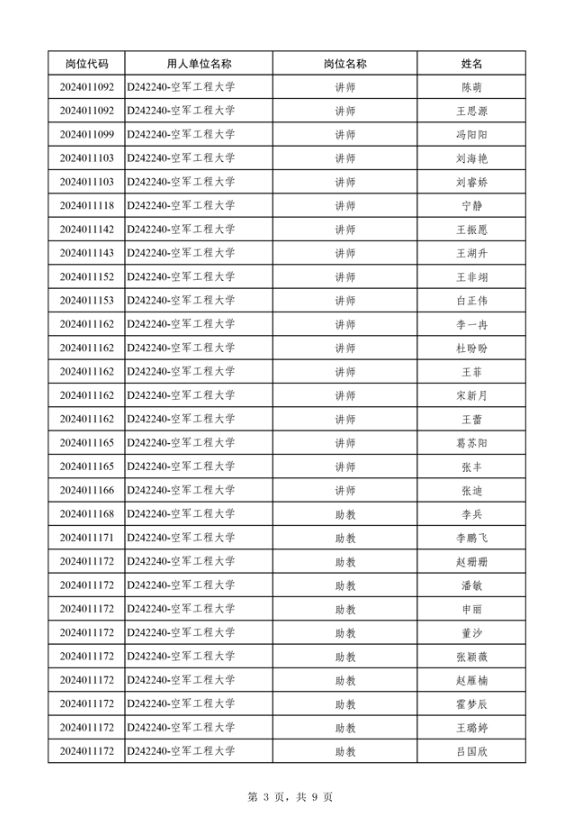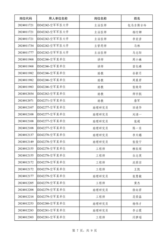 公布空军2024年公开招考文职人员第三批免笔试直接面试人员名单