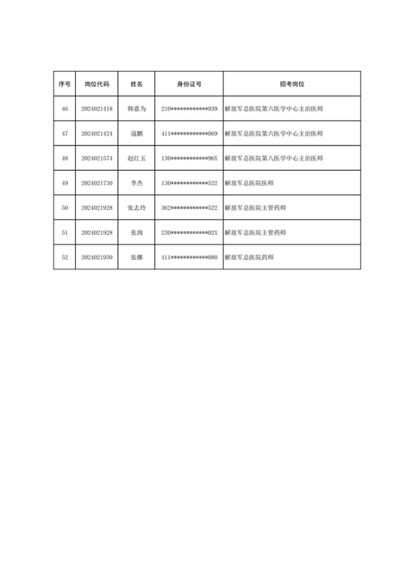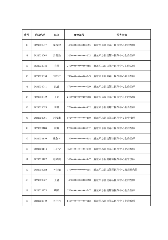 联勤保障部队2024年公开招考文职人员第一批免笔试直接面试岗位拟录用对象名单