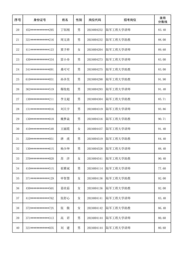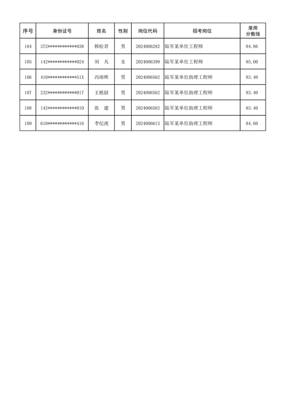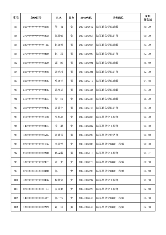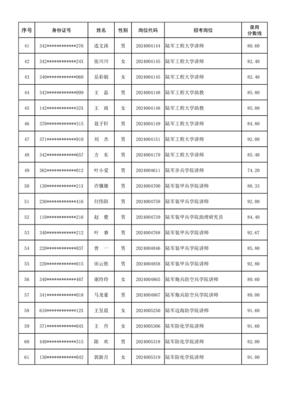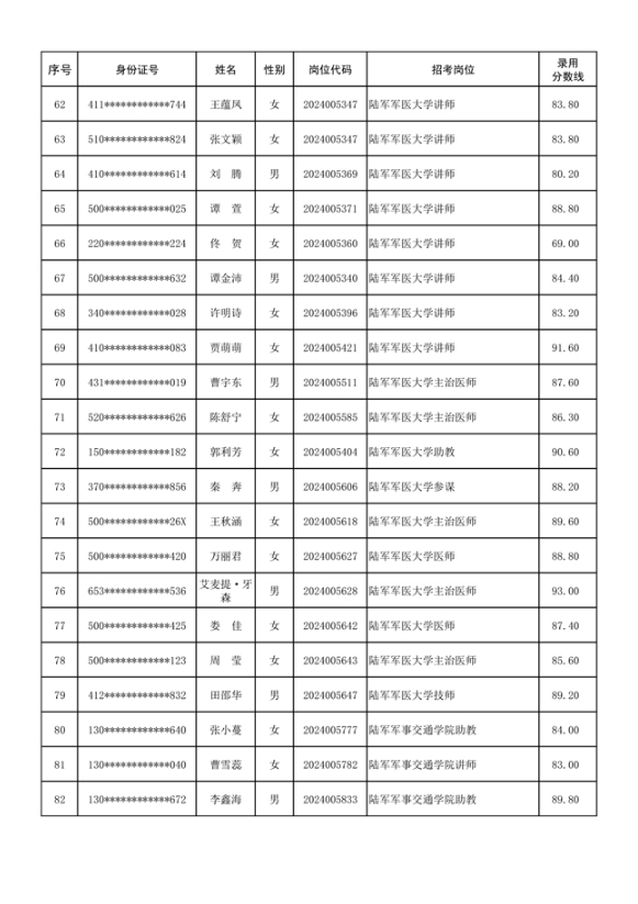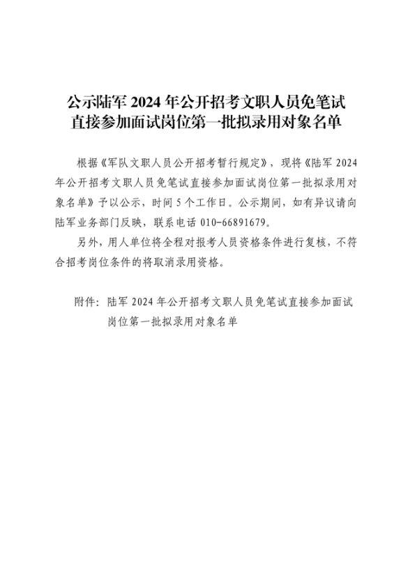 公示陆军2024年公开招考文职人员免笔试直接参加面试岗位第一批拟录用对象名单