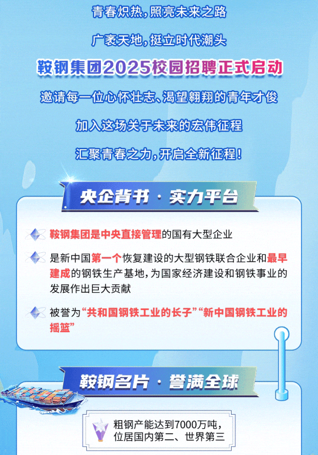 鞍钢集团2025年校园招聘正式启动!
