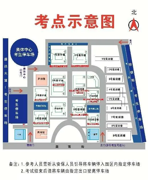 注:职教城区域考点较为集中,尤其鞍山师范学院应用技术学院设两个考点,分别为4号教学楼和6号教学楼,请考生仔细核对准考证上考点名称,避免走错考场。