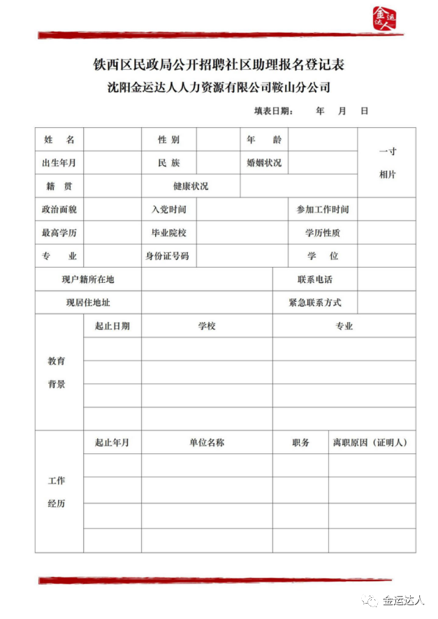 2、报名地点:鞍山铁东区前进路1号国际明珠39层25号(金运达人人力资源有限公司鞍山分公司)
