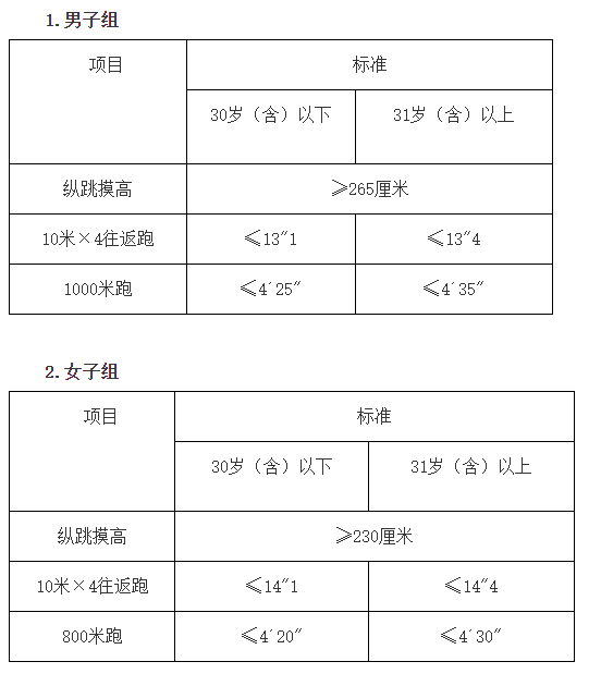 备注:年龄计算时间截止到参加体能测试当月。