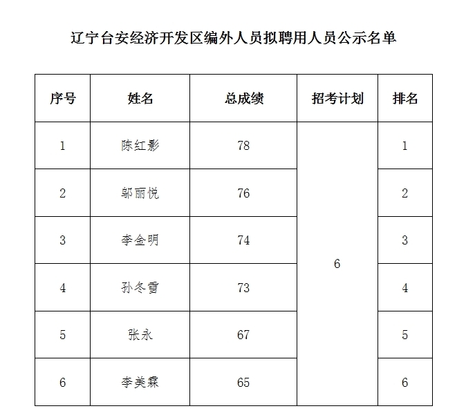 辽宁台安经济开发区公开招聘拟聘用人员公示公告