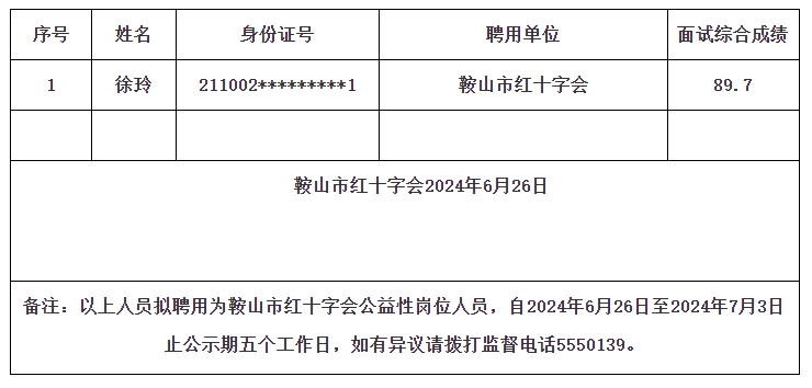 鞍山市红十字会公益性岗位聘用人员名单公示