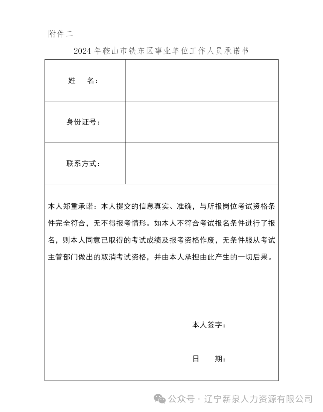 4.本次招聘所有信息在“辽宁薪泉人力资源有限公司”官网微信公众号平台发布,不再另行通知,请密切关注企业平台信息。若考生未按规定时间参加笔试、面试、体检等一切与本次公开招聘相关的工作,视为自动放弃报考资格,后果由考生本人承担;