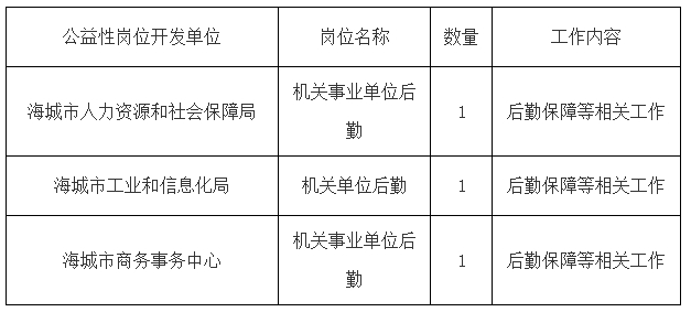 根据辽人社发【2021】7号、鞍人社【2022】7号文件有关规定,结合用人单位岗位开发情况,经海城市公益性岗位开发审核领导小组审核同意,人力资源和社会保障局等3家用人单位拟聘用公益性岗位人员3人,具体事宜如下: