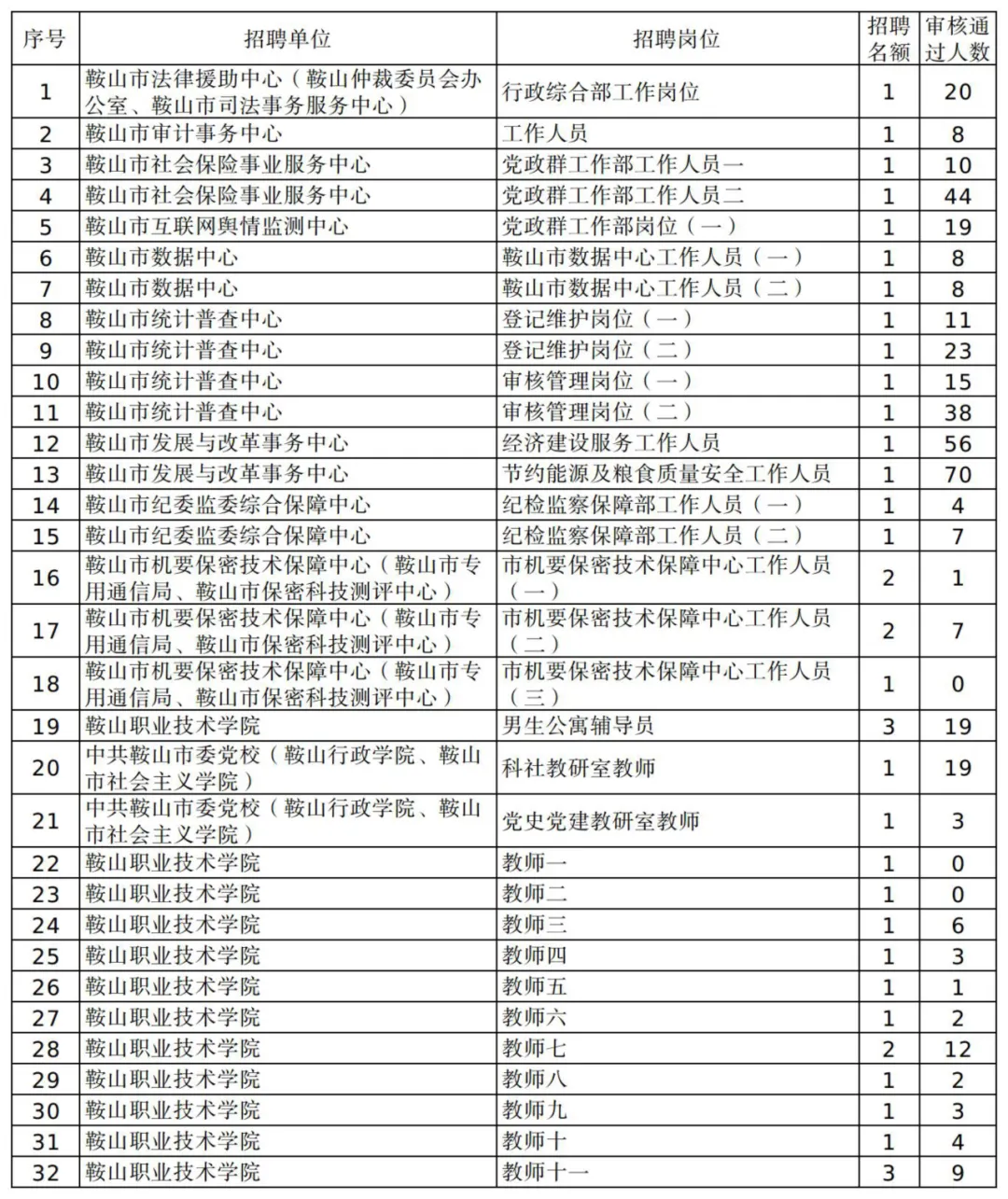 2024年鞍山市事业单位面向应届毕业生公开招聘高层次急需紧缺人才公告(第二批)岗位报名情况(2024年11月20日)