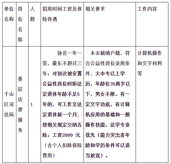 根据工作需要,1家单位招聘公益性岗位工作人员1人,现具体公告如下: