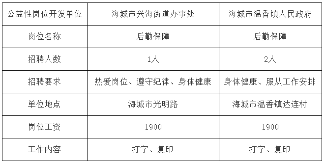 根据鞍人社发【2024】20号文件关于修订《鞍山市公益性岗位管理办法》的通知有关规定,结合用人单位岗位开发情况,经海城市公益性岗位开发审核领导小组审核同意,海城市温香镇人民政府、海城市兴海街道办事处拟聘用公益性岗位人员共计3人,具体事宜如下: