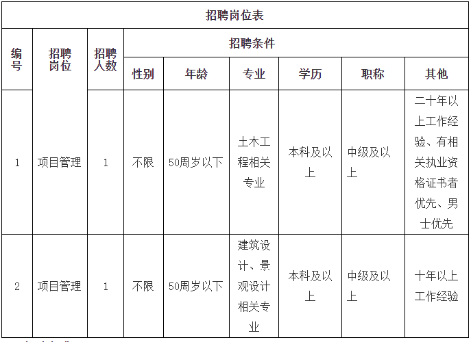 一、招聘计划及岗位条件