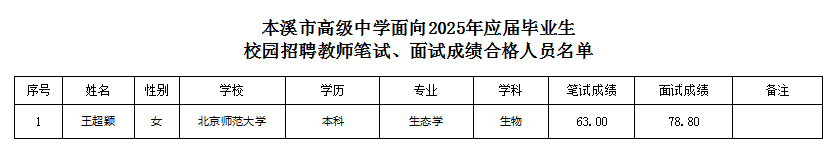 本溪市高级中学面向2025年应届毕业生校园招聘教师笔试、面试成绩合格人员名单