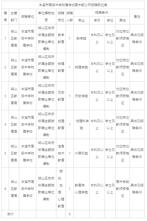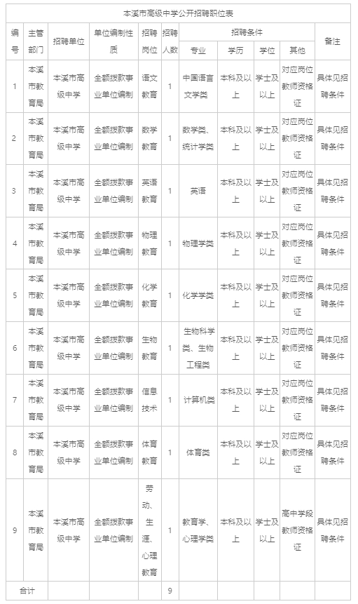 4.招聘工作由本溪市高级中学负责,公告解释权归本溪市高级中学所有。