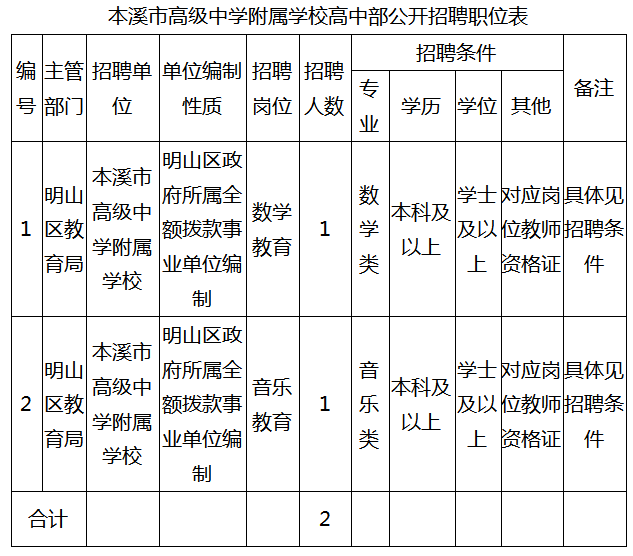 4.招聘工作由本溪市高级中学负责,公告解释权归本溪市高级中学所有。