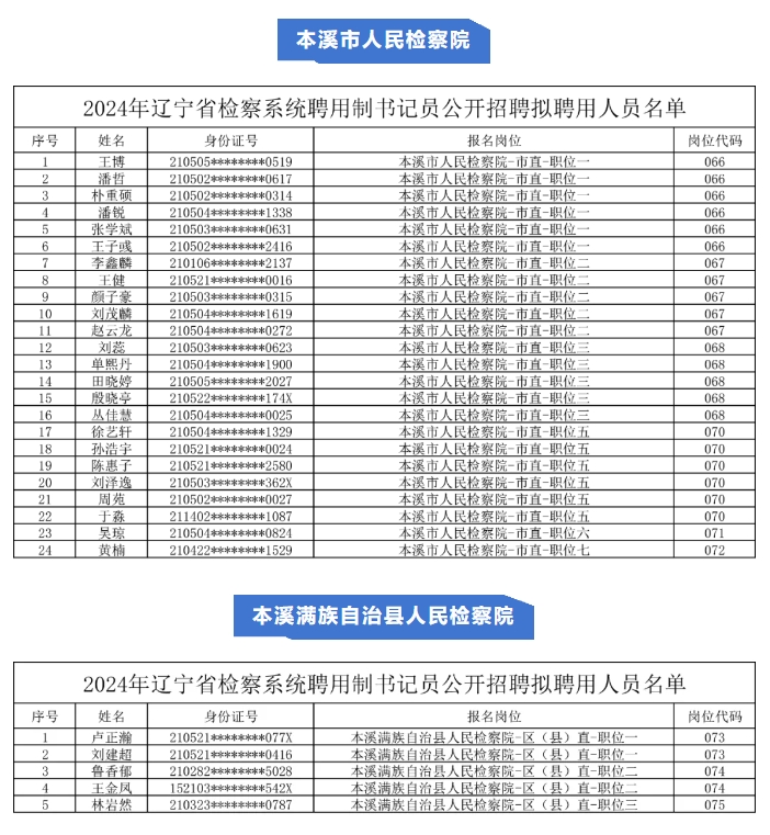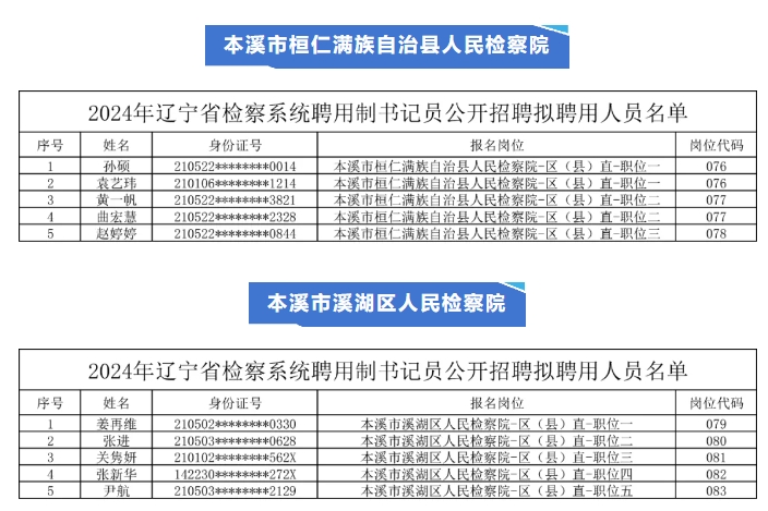 聘用制书记员拟聘用名单公示!欢迎加入本溪检察!