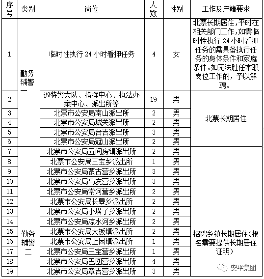 辽宁安平人力资源服务有限公司受北票市公安局的委托,现面向社会公开招聘辅警,公告如下:
