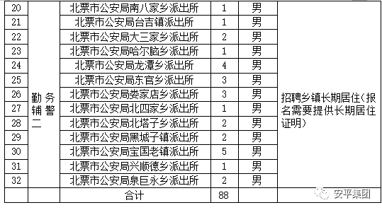 1. 计划招聘88人,主要从事警务辅助工作,具体工作地点及要求如下: