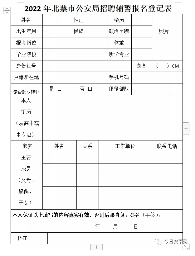 附件:《2022年北票市公安局招聘辅警报名登记表》