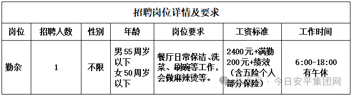 因工作需要,朝阳乾坤劳务有限公司面向社会公开招聘1名食堂岗位工作人员,派遣至朝阳市中心医院燕北院区食堂工作。具体招聘事项公告如下:
