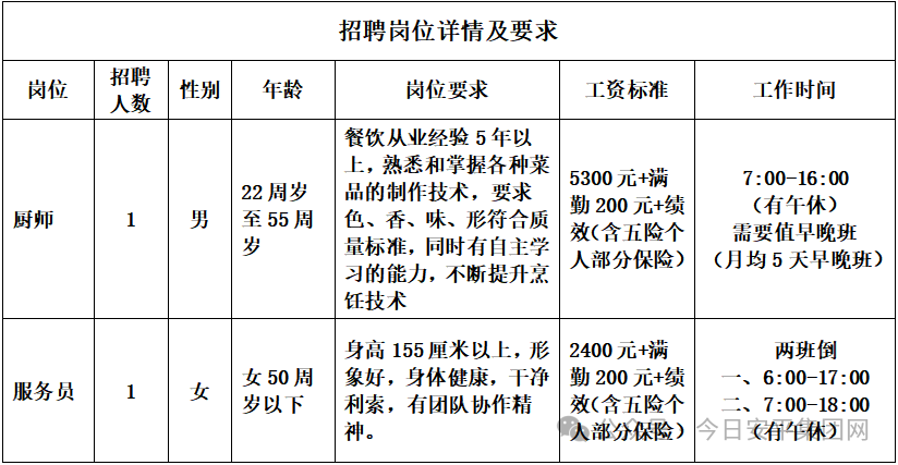 因工作需要,朝阳乾坤劳务有限公司面向社会公开招聘2名食堂岗位工作人员,派遣至朝阳市中心医院职工餐饮中心工作。具体招聘事项公告如下: